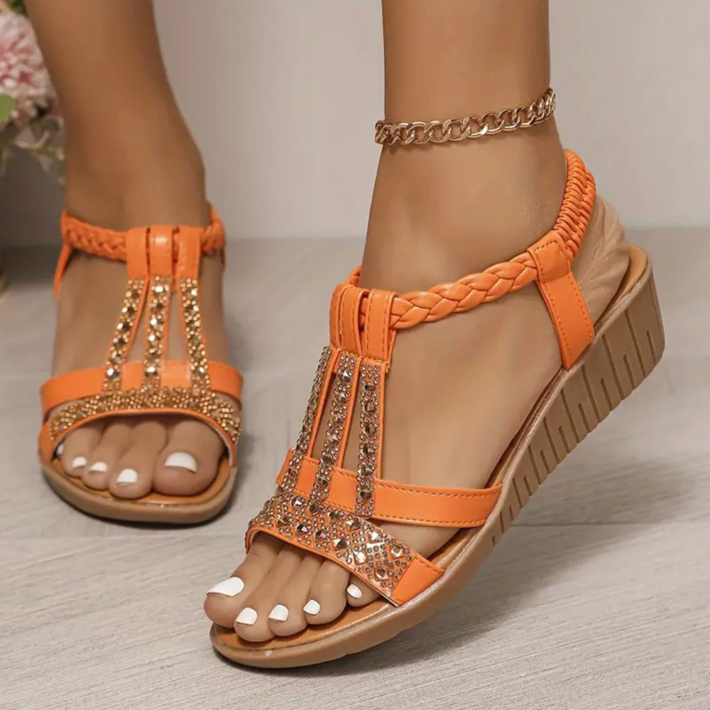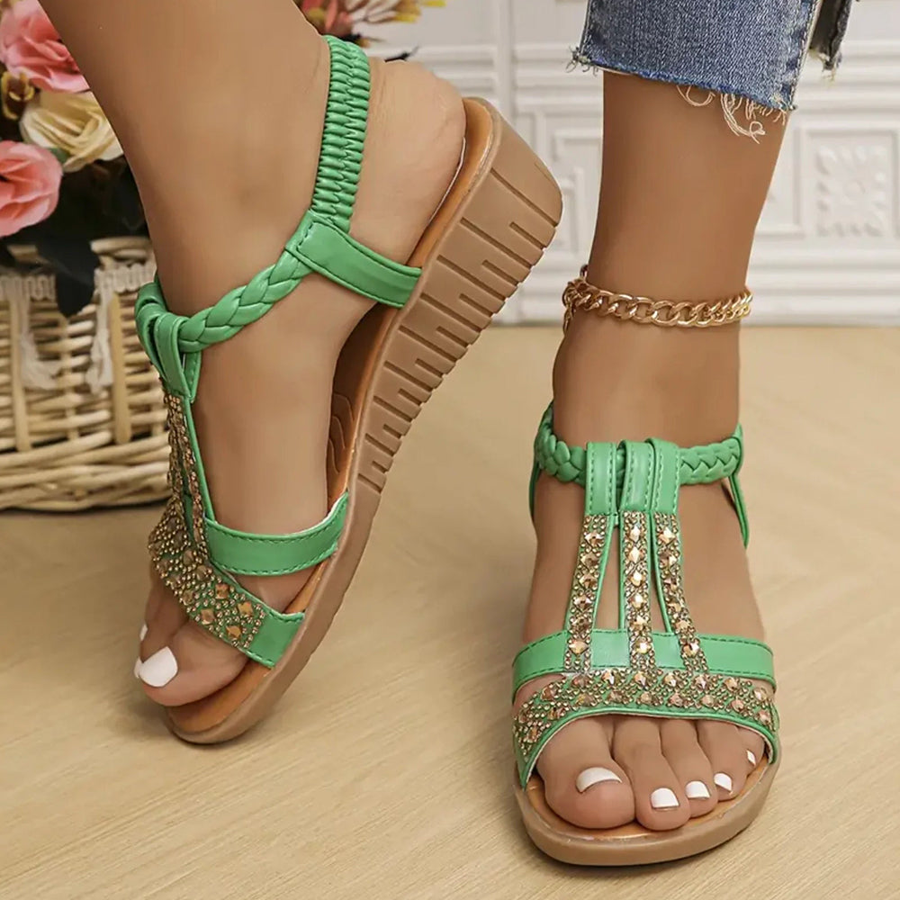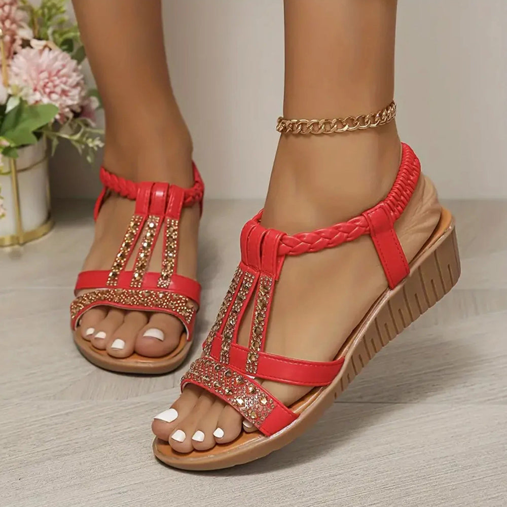 - 1 Pair x Women's Flat Rhinestone Fish Mouth Sandals