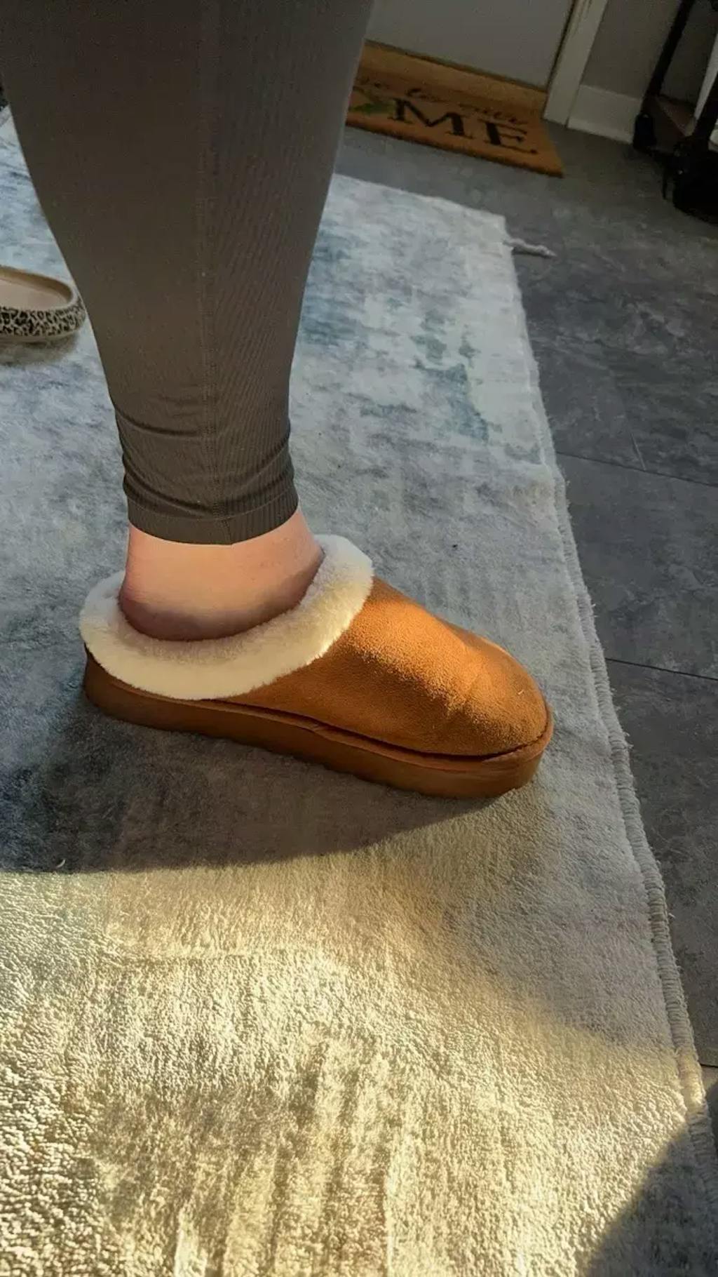 Exactly as described, comfortable and warm, great house shoes. The perfect Ugg dupe. Will be buying more!