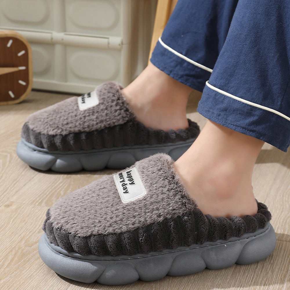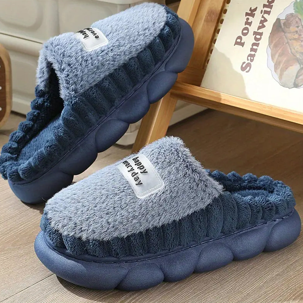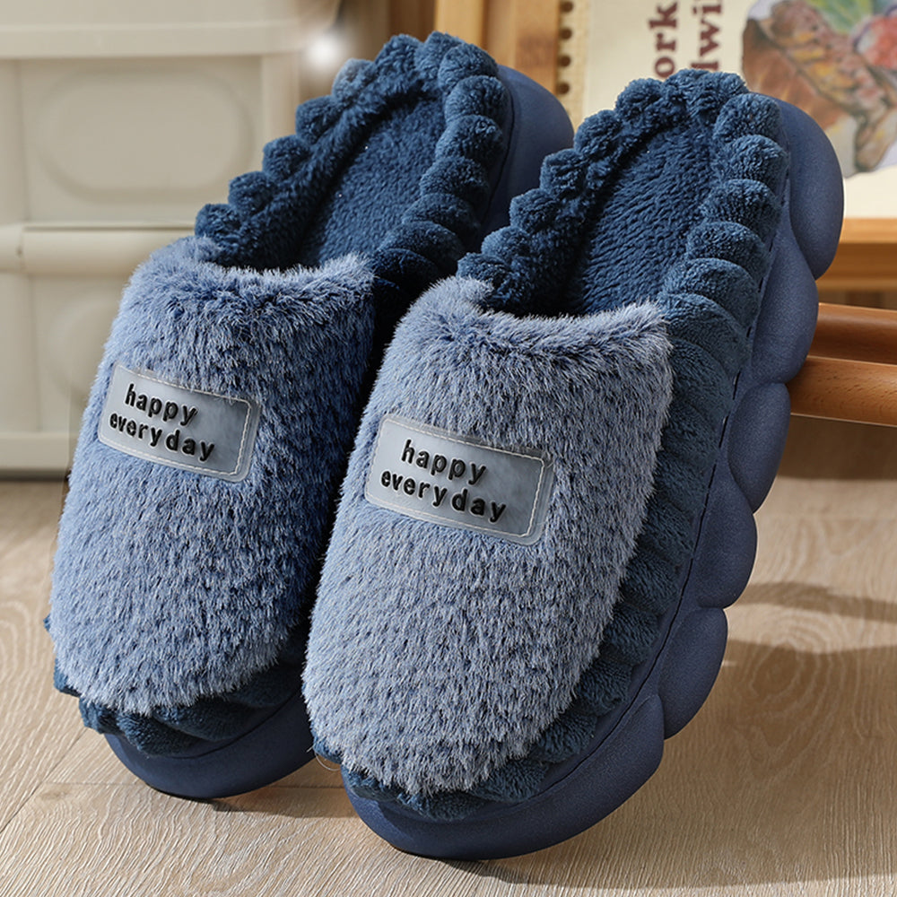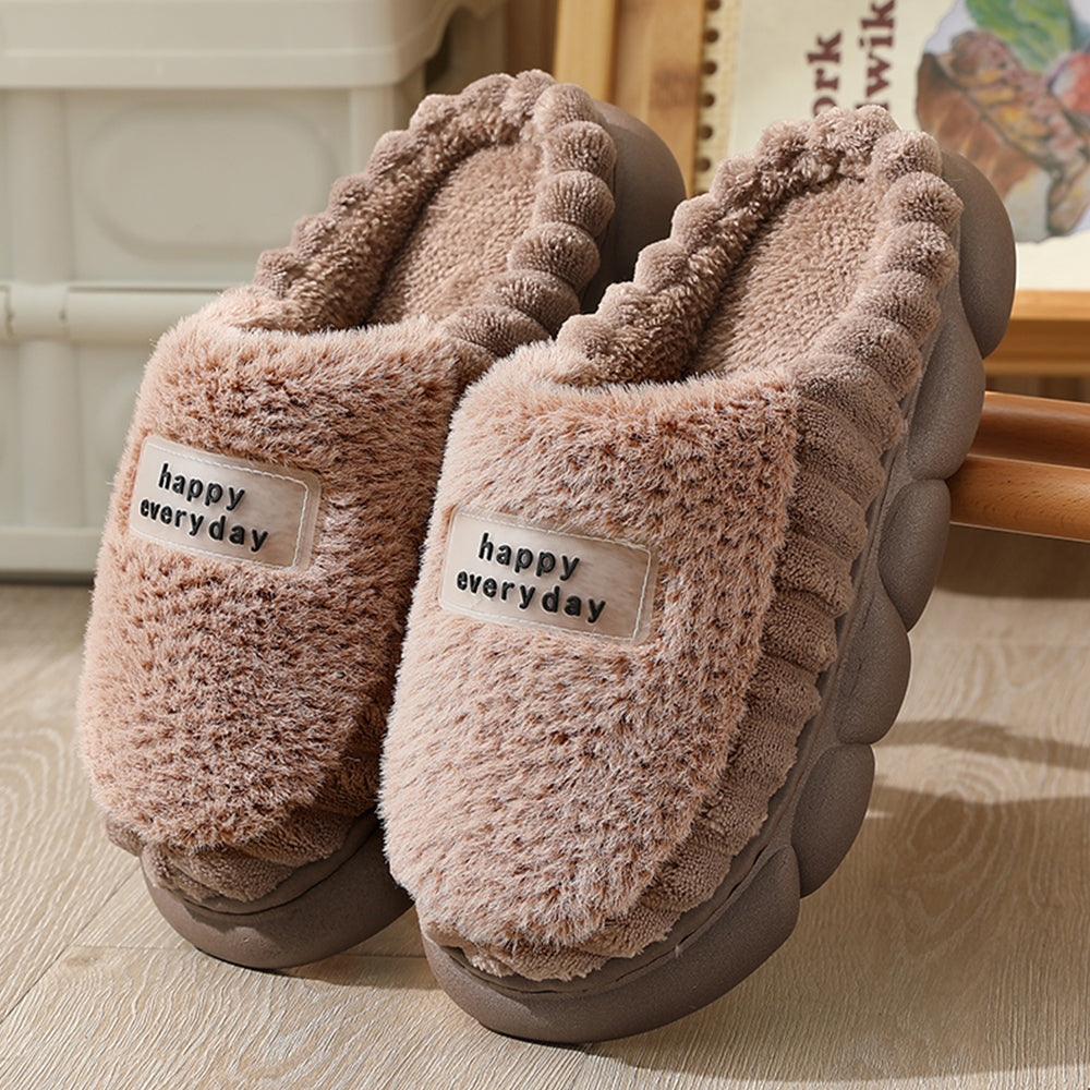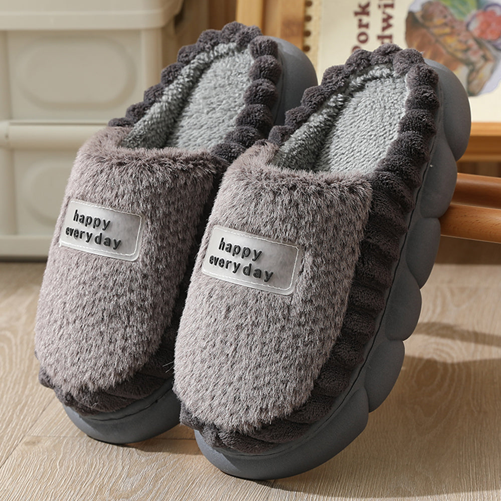 - 1 Pair x 'Happy Everyday' Cozy Women's Soft Fleece Winter Slippers